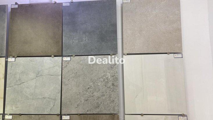 • Carrelage Espagnol : Travertin beige & Jazz (120x60), Ascolano gris (45x90), Torso Light, Alex Moca, Morocon et Royal Granite (60x60).